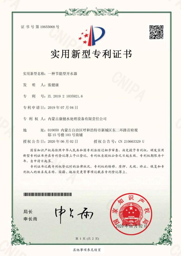 - 內(nèi)蒙古康健水處理設(shè)備有限責(zé)任公司是專業(yè)生產(chǎn)制造水處理設(shè)備、飲料設(shè)備、奶設(shè)備、殺菌設(shè)備、灌裝設(shè)備五大系列90余種配套產(chǎn)品。在反滲透、超濾、納濾、EDI模塊、等膜分離領(lǐng)域有著雄厚的技術(shù)實(shí)力,同時在水廠設(shè)計(jì)、中水回用、污水處理、分質(zhì)供水、無負(fù)壓變頻供水、鍋爐軟化水設(shè)備等領(lǐng)域有完善的技術(shù)團(tuán)隊(duì)和營銷網(wǎng)絡(luò)。公司坐落在遼闊大草原上美麗的首府——呼和浩特,是內(nèi)蒙古自治區(qū)唯一一家具有自主生產(chǎn)能力的企業(yè)。 “上善若水,水利萬物而不爭”康健水工自成立以來,始終堅(jiān)持“改善水質(zhì)、造福人類、服務(wù)社會、產(chǎn)業(yè)報國”的企業(yè)信條,以致力于開創(chuàng)人類綠色健康生活為己任,秉承“關(guān)愛生命、責(zé)任至上”的企業(yè)宗旨,成就了享譽(yù)四方的國內(nèi)知名水處理企業(yè)。 水是生命的源泉、工業(yè)的血液、城市的命脈。水是不可替代的寶貴資源。節(jié)約用水,關(guān)注點(diǎn)滴 為節(jié)約水資源貢獻(xiàn)一份力量, 健康飲水,利在當(dāng)代,功在千秋! 只有在這里,才能領(lǐng)會水的精髓;只有在這里,才...